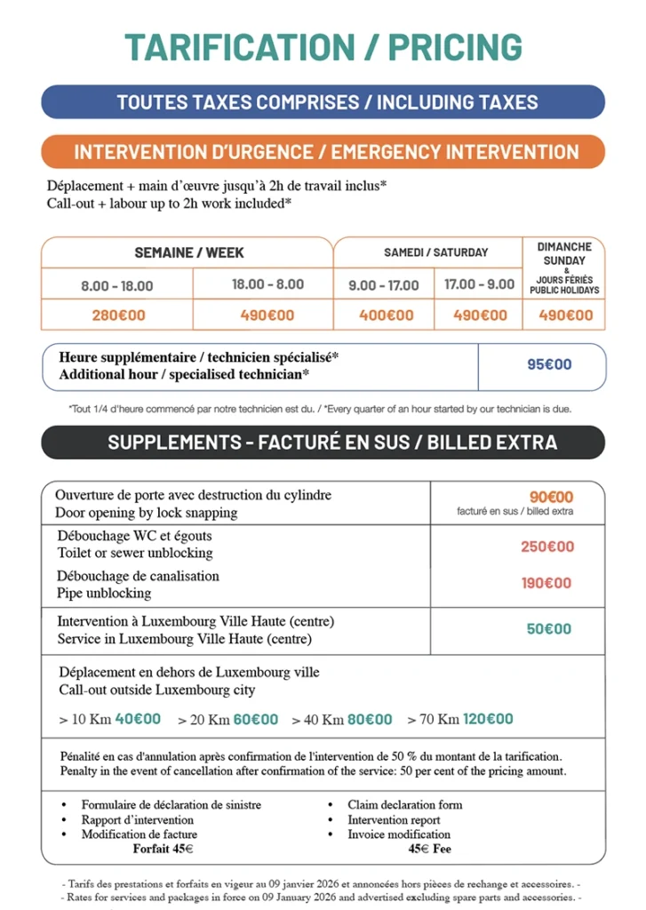 Skilled technicians who have handled hundreds of emergencies and installations in Luxembourg.